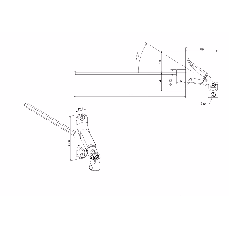 Angle de sortie de manœuvre possible variant de 0° (horizontal) à 50°.