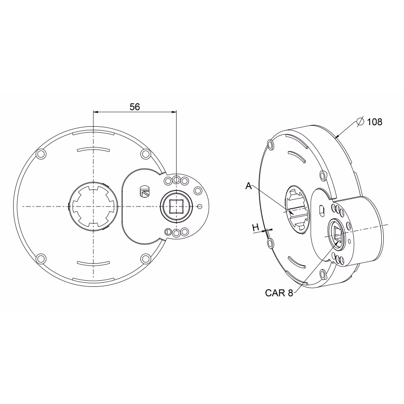 Déport axe : 56 mm.